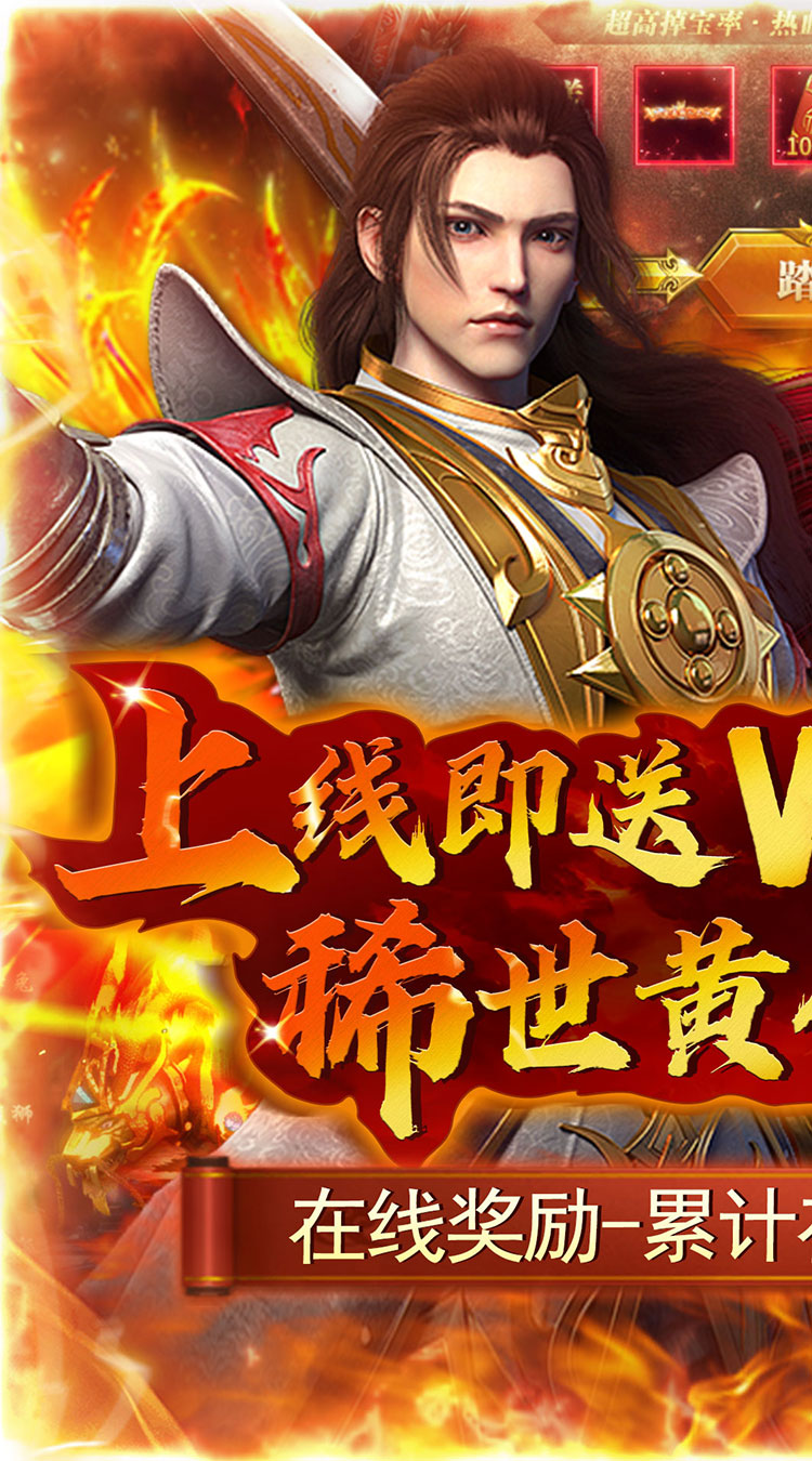 上线福利:送VIP5、100万元宝、“打金存钱人上人”称号、黄金战狮*1