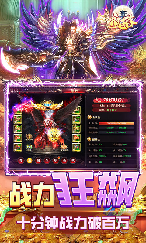 魔塔是一款魔幻风格的传奇游戏,精美的画面,多人激情PK,特殊跨服战场。超高的BOSS爆率以及多种的系统玩法。多种转职!满级VIP随便漂,每次漂到的VIP等级还可以获得专属礼包和特戒,游戏内所有装备皆可掉落,无需充值。万物皆可爆。