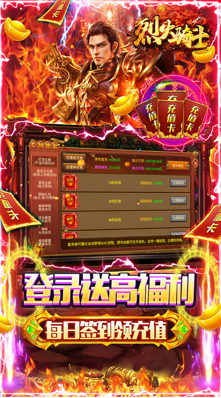 3.超爽GM特权,打怪爆真充,激活线上充值,白嫖到顶
