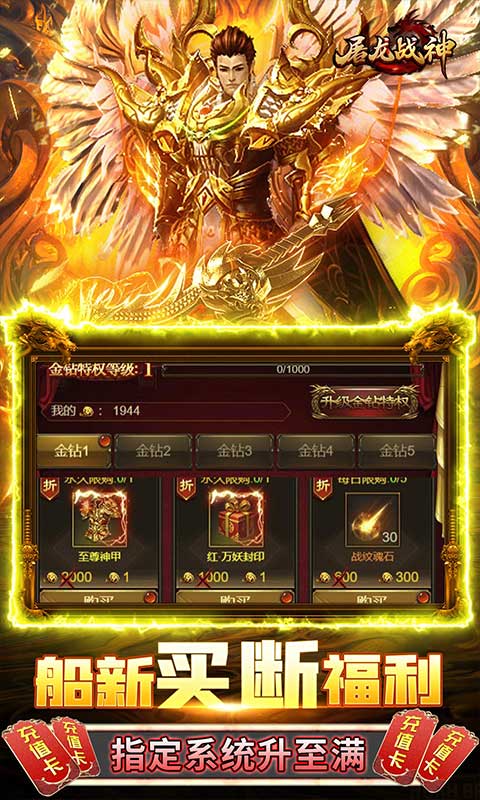 3、全新版本解锁新姿势,GM手撸无门槛真点充,手速越快金额越高;开局送白嫖特权,解锁高级特权每日领取大量充值卡和打宝金库!