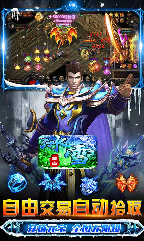 我们的传奇(冰雪8大陆)是款纯正冰雪高爆福利复古传奇,携全新六大陆版本盛大降临!首充十元送全屏拾取功能,平民玩家也能玩得爽!特权vip免费送满的冰雪传奇,创角即可免费享受尊贵自动回收特权,自动经验、自动元宝、自动合成、自动回收全民直接免费开启!全地图爆率提升100倍,小怪爆一切,小怪爆终极!击杀任意怪均有几率直接掉落神符!
